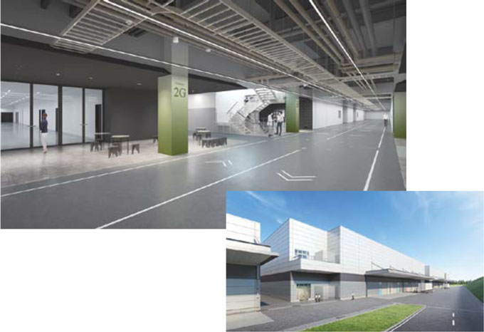 共用棟と同時進行で進められたのが、隣接する工場棟だ。施工を担当する北村知寛工事課長は概要をこう説明する。「1階と3階が工場で、2階はAGV(無人搬送車)用のスパイン(直線的な廊下)が走る物流専用階です。さらに1階と3階を垂直搬送機がつなぎます。床面積約5.8万m2の広大な棟内の物流動線を重視した構造になっています」。