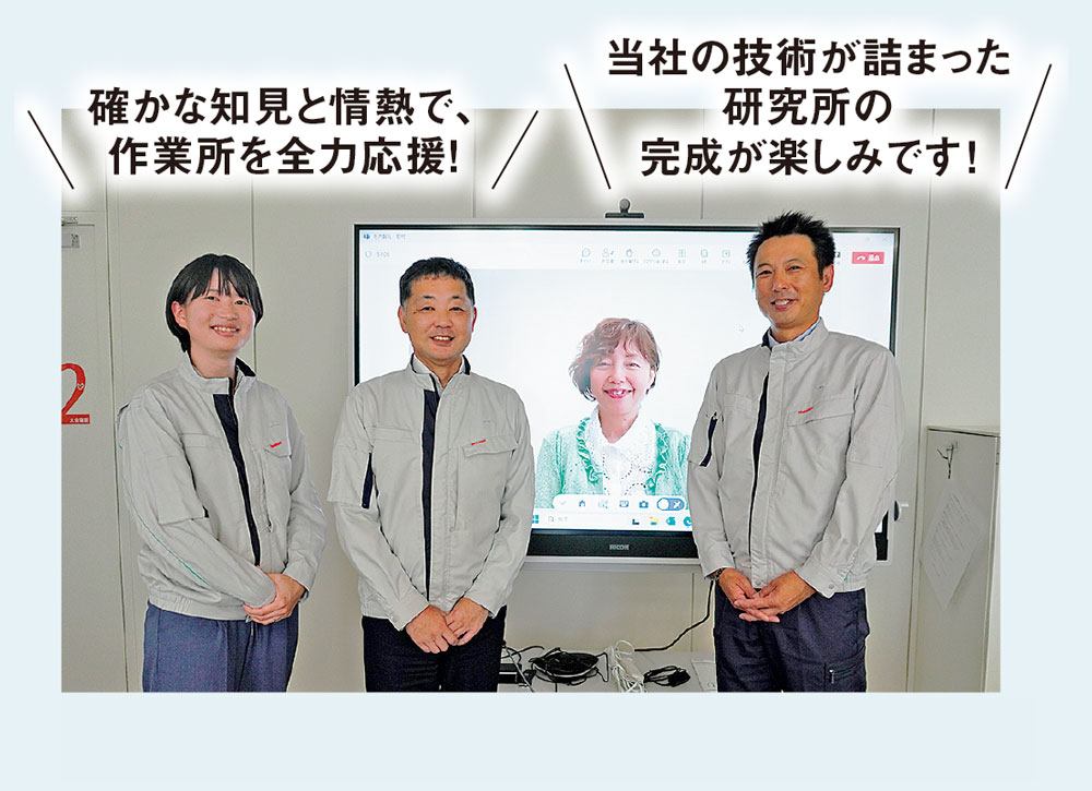 チャレンジの多い当作業所は社員の士気も高い。内田所長は「次世代技術の拠点を、ゼロカーボン・コンストラクションで建設する。あらゆる意味で次代に目を向けたこの現場では、特に若手社員が社内各部門と連携しながら力を発揮しています」と胸を張る。